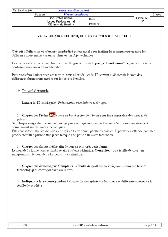 Sujet Tp Vocabulaire Technique