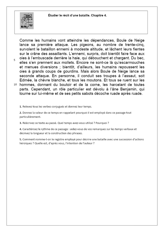 Séance 2 | La bataille de l’étable | Lecture Étude de la langue | - Sensibiliser à l’art du conteur par la lecture et l’étude de la langue (emploi motivé du présent dans un récit épique) | Chapitre 4. |