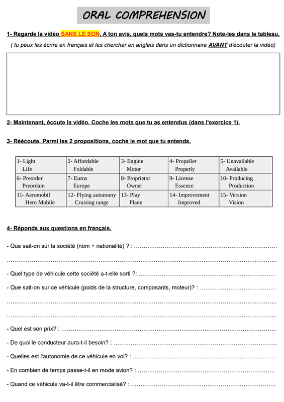 Entraînez-vous à la compréhension orale avec une vidéo avec un document à compléter.