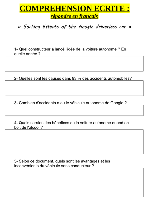Entraînez-vous à la compréhension écrite: lisez le document sur le véhicule sans conducteur de Google et répondez aux questions.