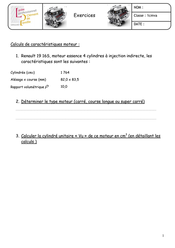 Exercices Cylindrée